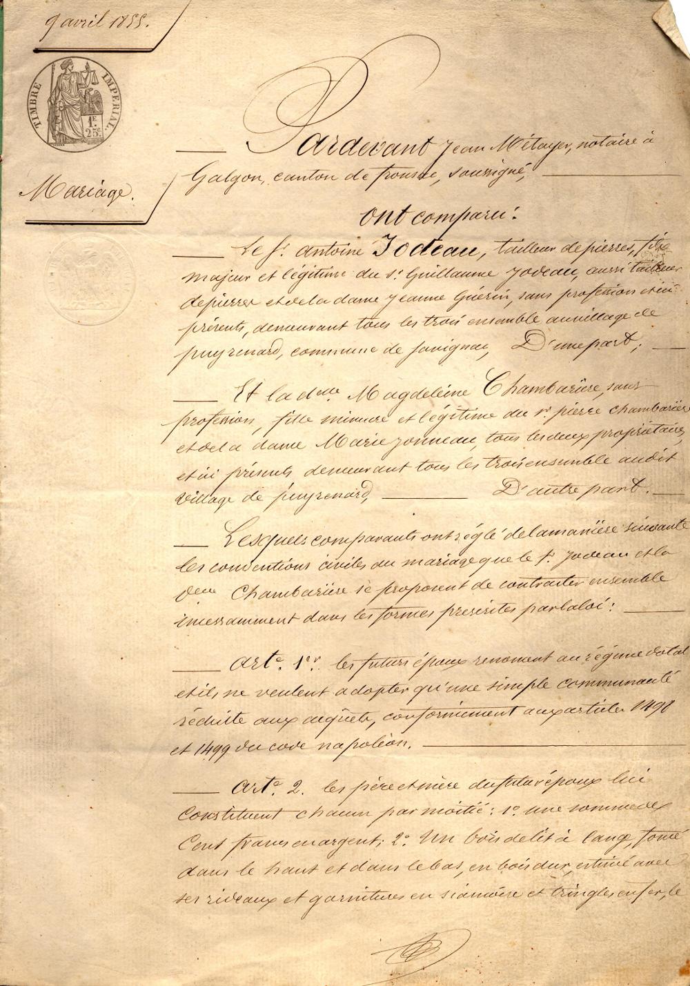 Ces contrats de mariage concernent des habitants de Savignac, cultivateurs et artisans