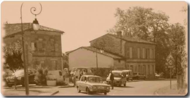 | L’épicerie d’avant-guerre : l’épicerie-bar Blavignac située dans le bourg. Danièle Tilh-Biais nous la décrit avec ses yeux d’enfant Sur la photo (d’aujourd’hui), c’est la maison au fond ; elle est restée en l’état : il n’y avait pas de vitrine |
